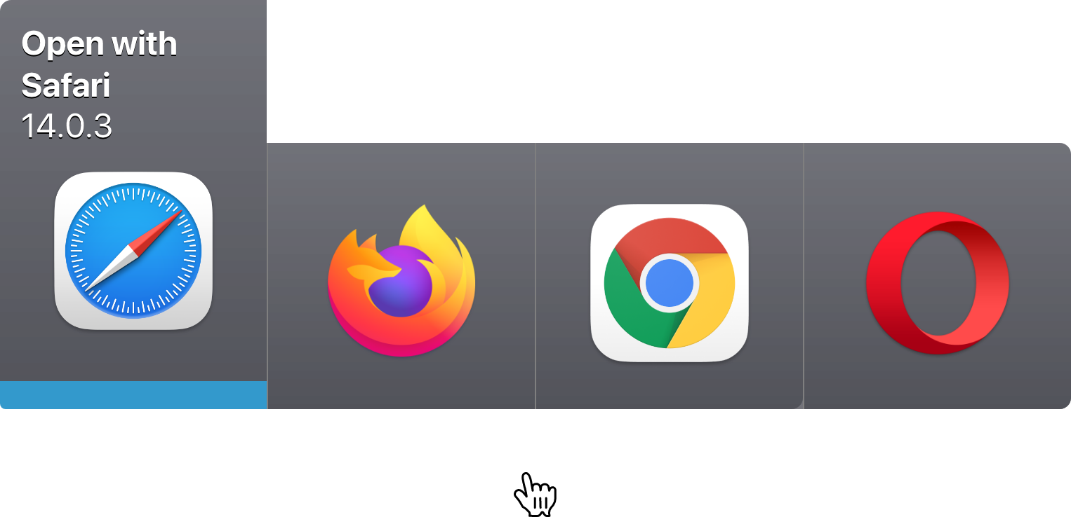 Bumpr is a Mac app that lets you choose where to open links. Click on a web link and you get a menu of your browsers, like this…